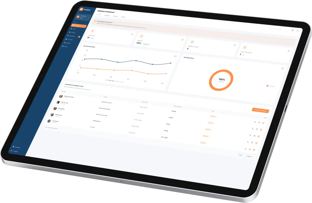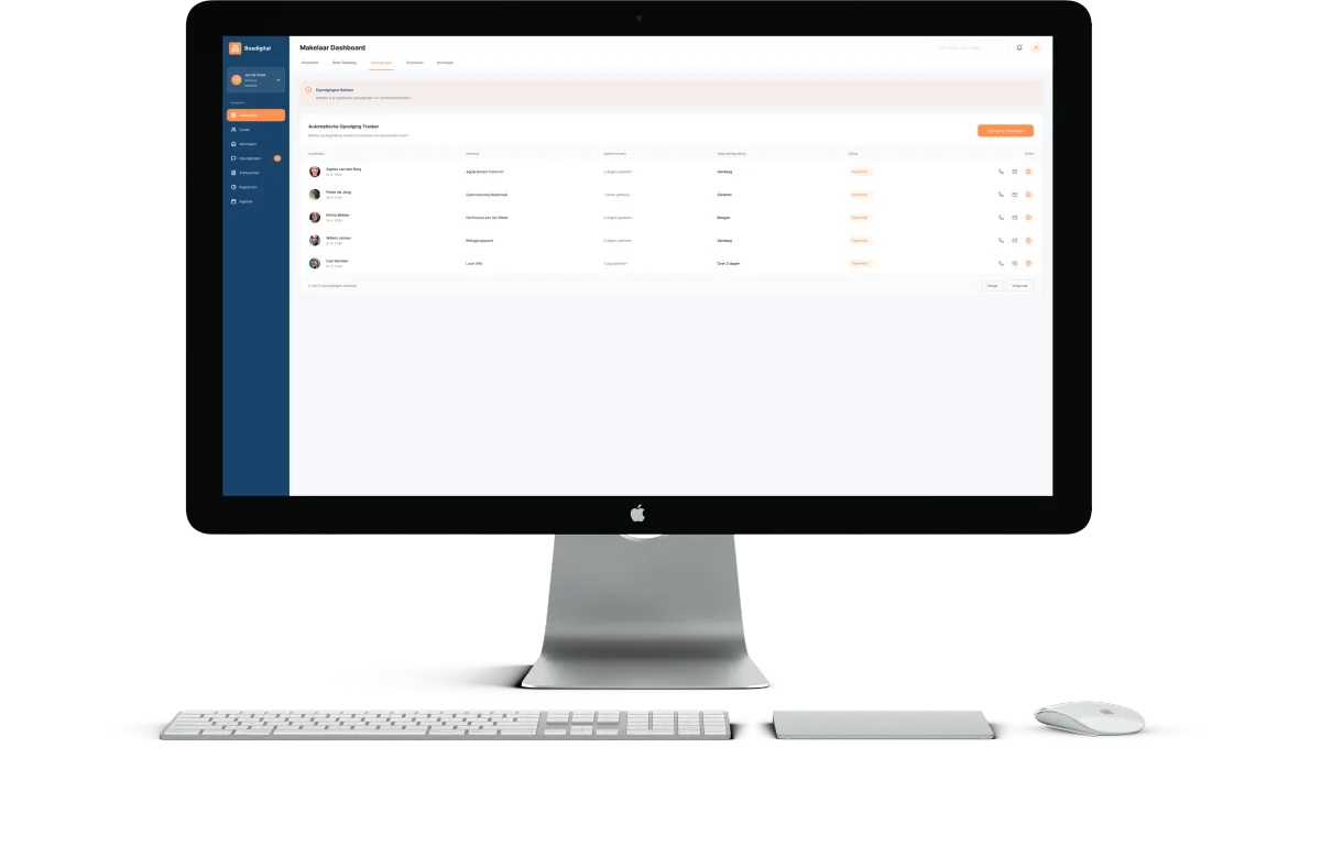 Als opvolging niet strak is, win je minder vaak — zelfs met goede marketing. Terwijl jij nog terugbelt, heeft een andere makelaar al gereageerd en een afspraak ingepland.